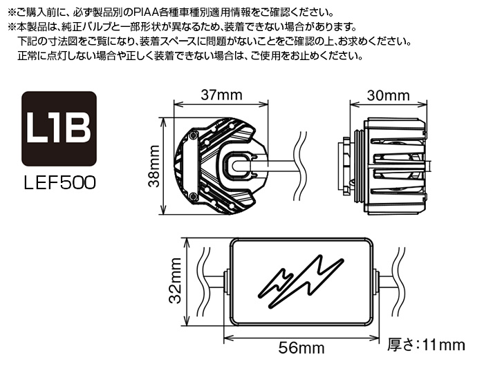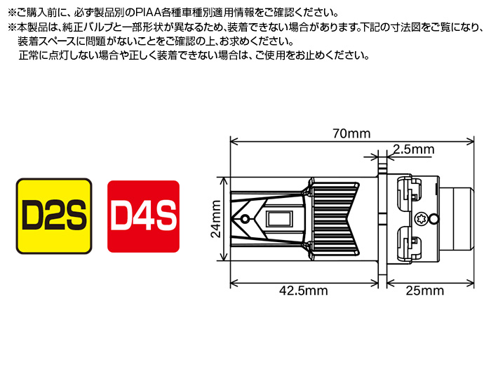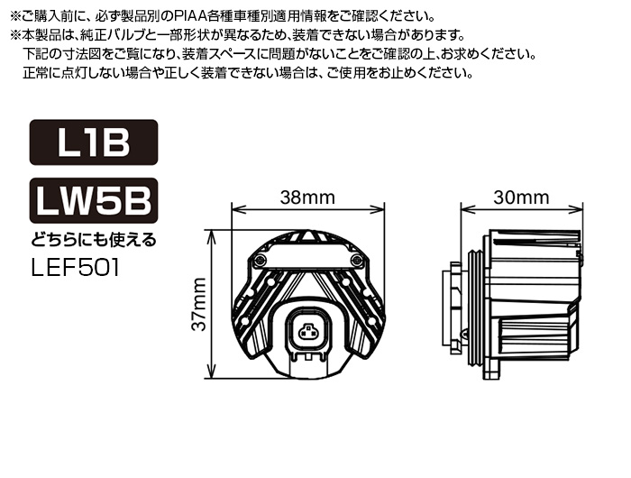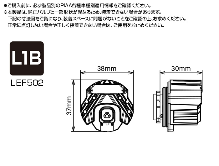 ※適用車種につきましては、PIAA LEDバルブ車種別適用表をご確認ください。