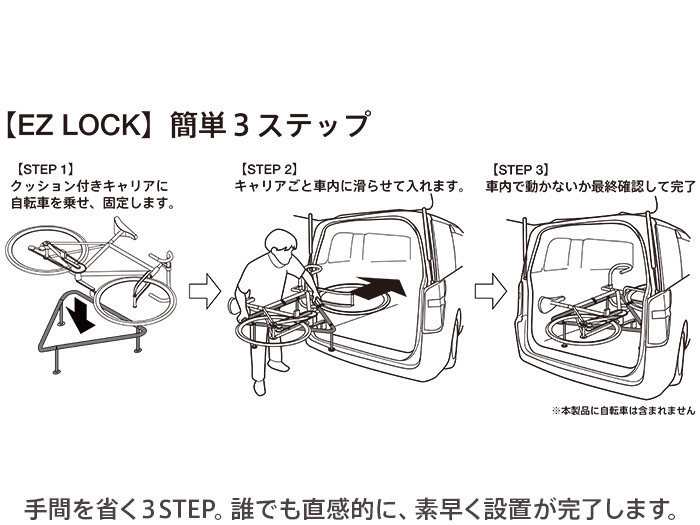 品名:車内積載用 横積みサイクルキャリア【EZ LOCK】
