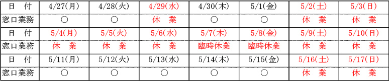 お客様相談窓口ゴールデンウィーク休業のお知らせ
